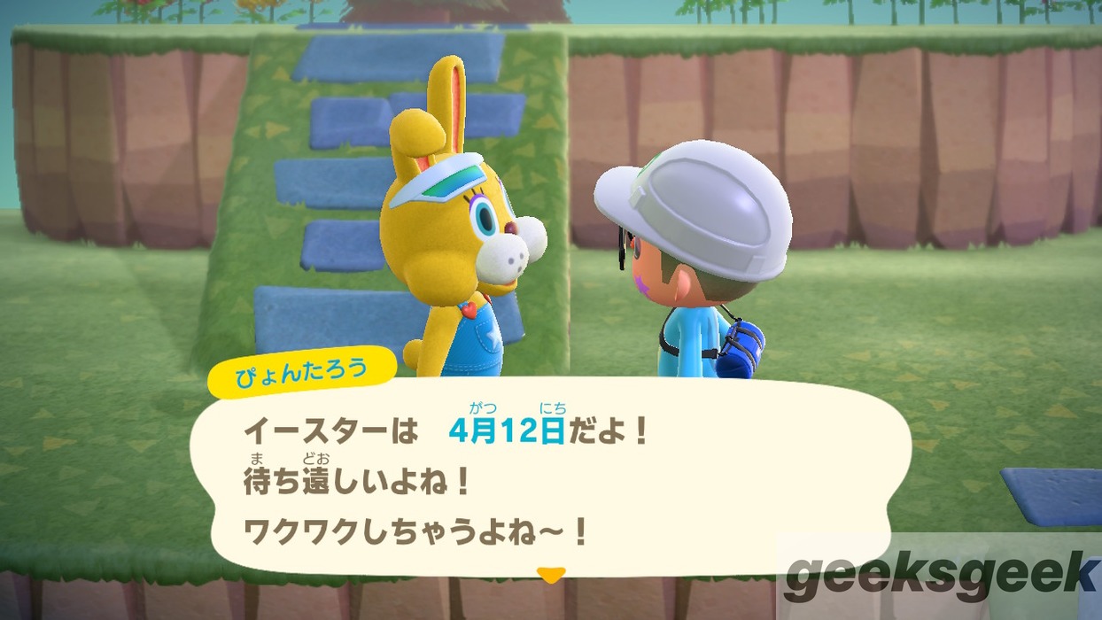 最終日となる4月12日にウサギの “ぴょんたろう” に話しかけると特別な家具がもらえるほか、期間中は島のあらゆるところで “たまご” をみつけることができるので、かき集めて期間限定のイースター家具をコンプリートしましょう!