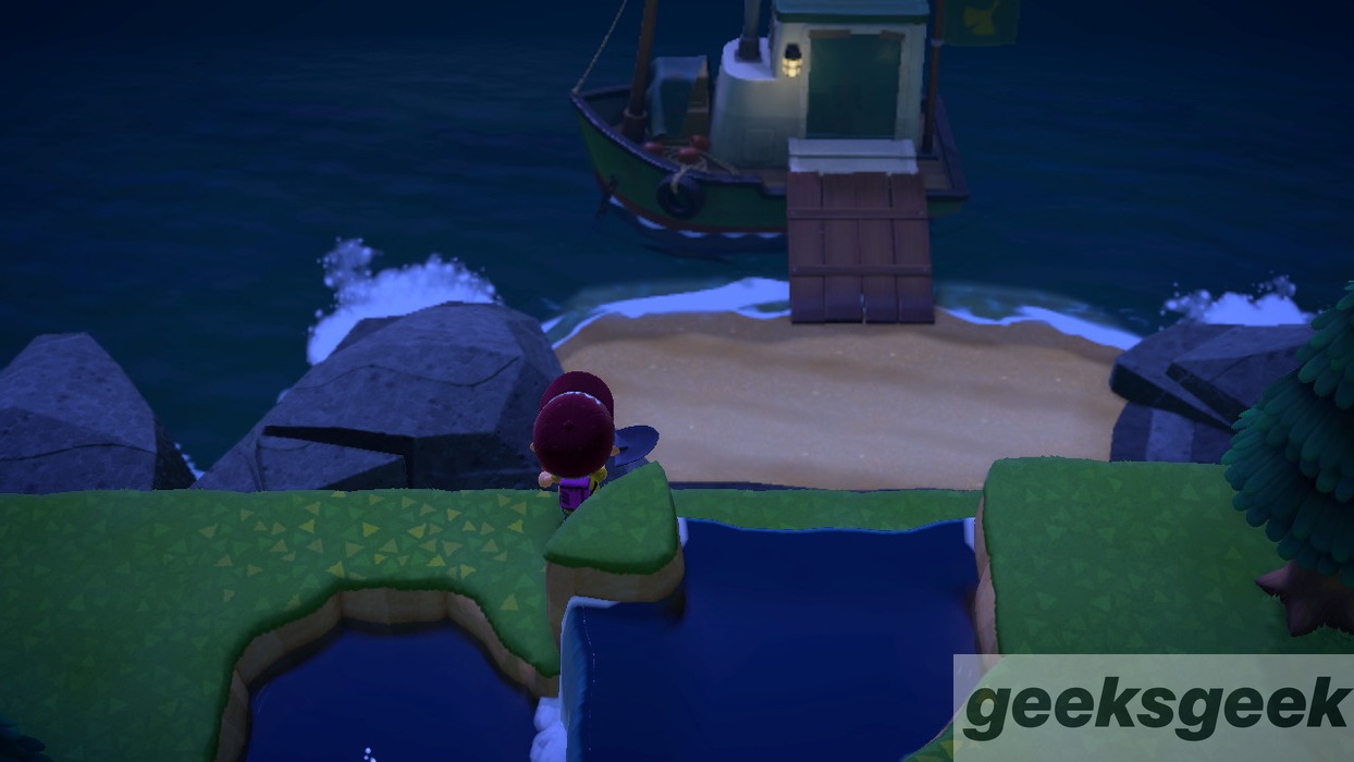 船に招待されるまでは、つねきちは島をうろついており、船に招待されて以降は “北の海岸” に停泊するようになるので、こちらもお忘れなく!
