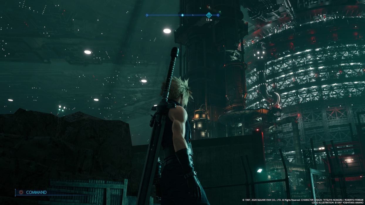 まずは、七番街スラムの上空。本家FF7では見ることが出来なかった上空の景観が良き。機械の疑似太陽がいくつも稼働しています。