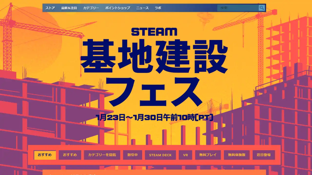 2023年2月30日午前10時まで開催されているSteamの「基地建設フェス」。