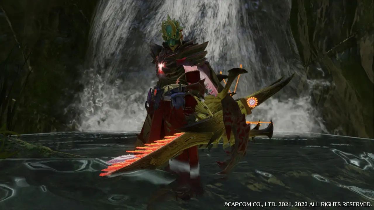 武器は「緋天ノ弩・六仙ジゾウ」「ヘビィバスタークラブ」「神放・雷禍壊劫」「氷輪砲ヴォルマーン」「赫絶の噴翼アケルナル」といった各属性弾を扱える強力なヘビィボウガンで、武器の空きスロは未使用。